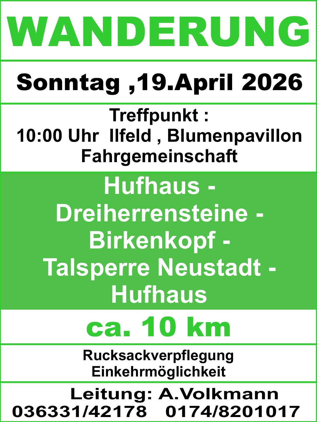Herzlich willkommen auf der Seite des Harzklub Zweigvereins Ilfeld-Wiegersdorf . Hier findet Ihr viele Informationen über unseren Verein , unsere Aktivitäten sowie über unser Revier im schönen Südharz. Viel Spaß beim stöbern !